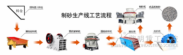 立式冲击破碎机(制砂机)进行细粉碎,细颗粒石经皮带机再次送至